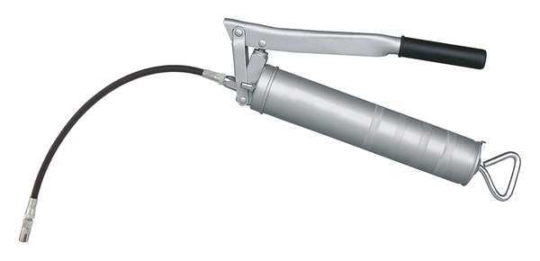 SKU G4792207CategoriesDescription Grease Gun, Grease Gun Loading Method Bulk, Cartridge, Grease Gun Handle Style Lever, Nozzle Extension Type Rigid Pipe, Strokes per Oz. 28, Max. Operating Pressure 10,000 psi, Cartridge Capacity 14 oz, Bulk Capacity 16 oz, Pipe Length 6 in, Gray, Tube Material Steel, Tether Style Standard Tool (Accessory Needed for Tethering), Variable Stroke / Full Stroke Full Stroke, 1 cc, Tool Length 14 1/2 in, For Use With 14 oz Grease Cartridges, Application For High Pressure Injecting of Oils & GreasesgraingerSKU: 15F210, mscSKU: , zoro_no: G4792207, mongo_id: 65bbe9db22d7a989a9980324