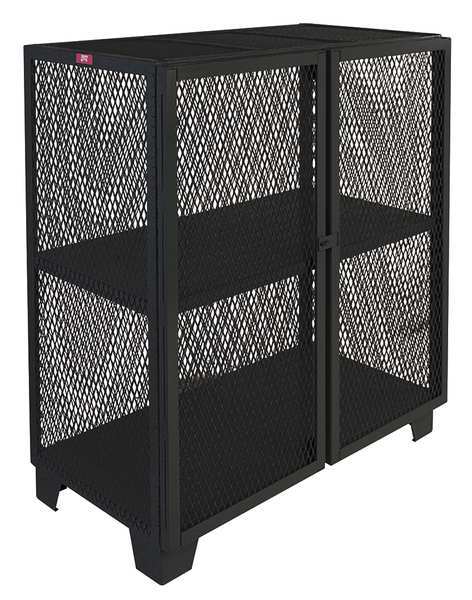 SKU G9946867CategoriesDescription Storage Cabinet, Base Type Legs, Body Panel Type Ventilated, Cabinet Color Black, Cabinet Material Steel, Cabinet Storage Components Shelves, Door Handle Type Swing, Door Type Ventilated, Duty Rating Super Duty, Frame Assembled Assembled, Load Capacity per Shelf 1,500 lb, Lock Type Padlock Hasp, Mobility Stationary, Number of Shelves 2, Overall Depth 36 in, Overall Height 54 in, Overall Width 60 in, Audit Trail Storage None, Cabinet Finish Powder Coated, Number of Doors 2graingerSKU: 18G993, mscSKU: , zoro_no: G9946867, mongo_id: 65bbe88b22d7a989a98fdef1