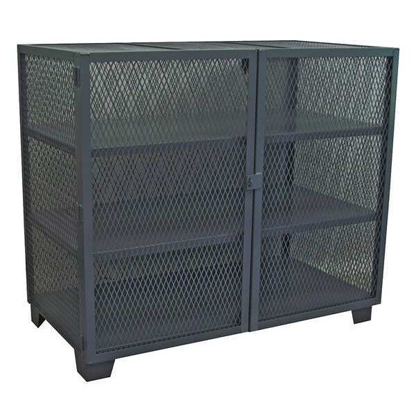 12 ga. Steel Storage Cabinet, 48 in W, 54 in H, StationarySKU G9946702CategoriesDescription Storage Cabinet, Base Type Legs, Body Panel Type Ventilated, Cabinet Color Black, Cabinet Material Steel, Cabinet Storage Components Shelves, Door Handle Type Swing, Door Type Ventilated, Duty Rating Extra-Heavy Duty, For Use Indoors/Outdoors No, Frame Assembled Assembled, Load Capacity per Shelf 1,000 lb, Lock Type Padlock Hasp, Mobility Stationary, Mounting Location Freestanding, Number of Shelves 2, Overall Depth 24 in, Overall Height 54 in, Overall Width 48 in, Audit Trail Storage NonegraingerSKU: 18H017, mscSKU: , zoro_no: G9946702, mongo_id: 65bbea5822d7a989a99aa263