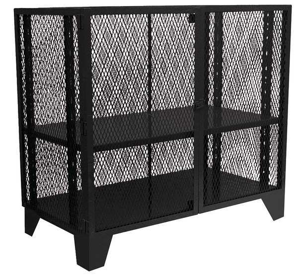 SKU G9946876CategoriesDescription Storage Cabinet, Base Type Legs, Body Panel Type Ventilated, Cabinet Color Black, Cabinet Material Steel, Cabinet Storage Components Shelves, Door Handle Type Swing, Door Type Ventilated, Duty Rating Super Duty, Frame Assembled Assembled, Load Capacity per Shelf 1,500 lb, Lock Type Padlock Hasp, Mobility Stationary, Number of Shelves 2, Overall Depth 36 in, Overall Height 54 in, Overall Width 48 in, Audit Trail Storage None, Cabinet Finish Powder Coated, Number of Doors 2graingerSKU: 18G992, mscSKU: , zoro_no: G9946876, mongo_id: 65bbe9db22d7a989a997f2a8