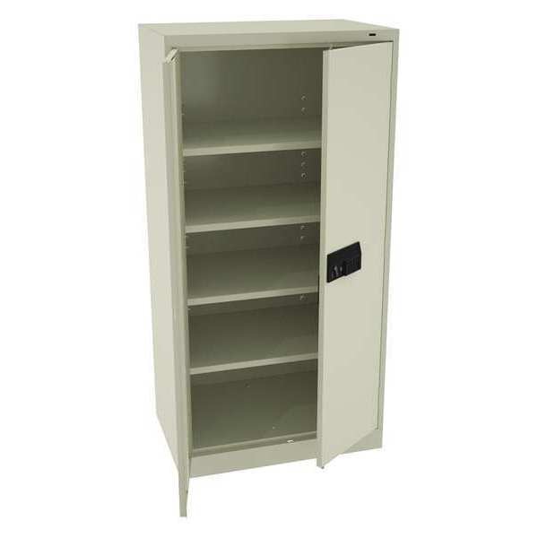 Description Storage Cabinet, Base Type Frame, Body Panel Type Solid, Cabinet Color Light Gray, Cabinet Material Steel, Cabinet Storage Components Shelves, Door Handle Type Swing, Door Type Solid, Duty Rating Medium Duty, For Use Indoors/Outdoors No, Frame Assembled Assembled, Load Capacity per Shelf 200 lb, Lock Type Keyed, Mobility Stationary, Mounting Location Freestanding, Number of Shelves 4, Overall Depth 18 in, Overall Height 72 in, Overall Width 36 in, Audit Trail Storage None