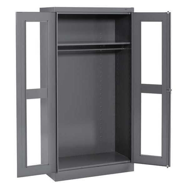 SKU G2117431CategoriesDescription Storage Cabinet, Base Type Frame, Body Panel Type Solid, Cabinet Color Medium Gray, Cabinet Material Steel, Cabinet Storage Components Hanging Rods, Shelves, Door Handle Type Swing, Door Type Clearview, Duty Rating Light Duty, For Use Indoors/Outdoors No, Frame Assembled Unassembled, Load Capacity per Shelf 200 lb, Lock Type Keyed, Mobility Stationary, Mounting Location Freestanding, Number of Shelves 1, Overall Depth 18 in, Overall Height 72 in, Overall Width 36 in, Audit Trail Storage NonegraingerSKU: 8VXY0, mscSKU: , zoro_no: G2117431, mongo_id: 65bbe78f9a749db822744051