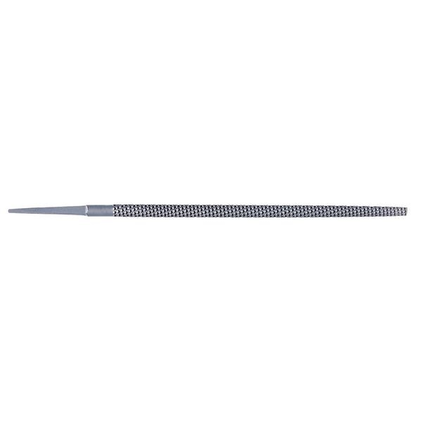 Description Round Wood Rasp File, File Style Rasp, File Type Round Wood Rasp File, Profile Shape Round, Face Cut Style Rasp-Cut, Edge Cut Style Single, File Length without Tang 10 in, File Diameter 3/8 in, Number of Cut Edges 1, Rigidity Rigid, Taper Taper Towards Point, Teeth per Inch 8.5, File Body Finish Natural, Handle Length 10 in
