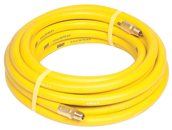 SKU G3368425CategoriesDescription Air Hose, Hose Inside Dia. 1/4 in, Hose Outside Dia. 9/16 in, Hose Length 50 ft, Hose Color Yellow, Hose Tube Material Nitrile, Hose Cover Material Nitrile, Max. Working Pressure @ 70 F 300 psi, Temp. Range -20 Degrees to 190 Degrees F, Standards RMA Class A, Safety Factor 4:1, Hose Fitting A Material Brass, Hose Fitting B Material Brass, Hose Fitting A Type MNPT, Hose Fitting B Type MNPT, Hose Fitting A Size 1/4 in, Hose Fitting B Size 1/4 in, Hose Configuration Coupled AssemblygraingerSKU: 4XR49, mscSKU: , zoro_no: G3368425, mongo_id: 65bbe92822d7a989a993b935