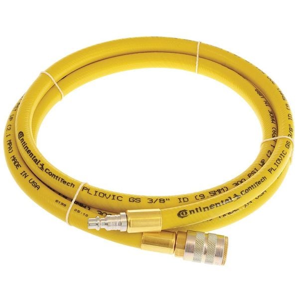 $76.74 / eachWeb price1/4" x 50 ft Nitrile Coupled Multipurpose Air Hose 300 psi YLSKU G3368425CategoriesDescription Air Hose, Hose Inside Dia. 1/4 in, Hose Outside Dia. 9/16 in, Hose Length 50 ft, Hose Color Yellow, Hose Tube Material Nitrile, Hose Cover Material Nitrile, Max. Working Pressure @ 70 F 300 psi, Temp. Range -20 Degrees to 190 Degrees F, Standards RMA Class A, Safety Factor 4:1, Hose Fitting A Material Brass, Hose Fitting B Material Brass, Hose Fitting A Type MNPT, Hose Fitting B Type MNPT, Hose Fitting A Size 1/4 in, Hose Fitting B Size 1/4 in, Hose Configuration Coupled AssemblygraingerSKU: 4XR49, mscSKU: , zoro_no: G3368425, mongo_id: 65bbe92822d7a989a993b935