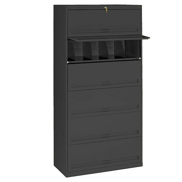 SKU G9809773CategoriesDescription File Cabinet, File Cabinet Type Lateral, Series Closed Style Fixed Shelf Lateral File, File Size Legal/Letter, Number of Drawers 0, Number of Doors 5, Overall Width 36 in, Overall Height 63 1/2 in, Overall Depth 17 in, Finish Painted, Color Black, Material Steel, Handle Type Full-Width Drawer Pulls, Label Holder Included Yes, Lock Included Yes, Assembled, Includes Fixed ShelfgraingerSKU: 5UEZ6, mscSKU: , zoro_no: G9809773, mongo_id: 65bbea5e22d7a989a99aed24