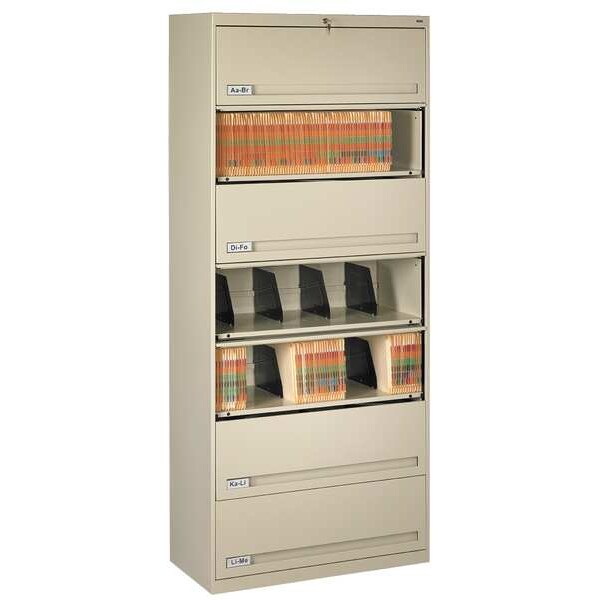 SKU G9174383CategoriesDescription File Cabinet, File Cabinet Type Lateral, Series Closed Style Fixed Shelf Lateral File, File Size Legal/Letter, Number of Drawers 0, Number of Doors 5, Overall Width 36 in, Overall Height 63 1/2 in, Overall Depth 17 in, Finish Painted, Color Champ/Putty, Material Steel, Handle Type Full-Width Drawer Pulls, Label Holder Included Yes, Lock Included Yes, Assembled, Includes Fixed ShelfgraingerSKU: 5UEZ5, mscSKU: , zoro_no: G9174383, mongo_id: 65bbe90822d7a989a992da1c