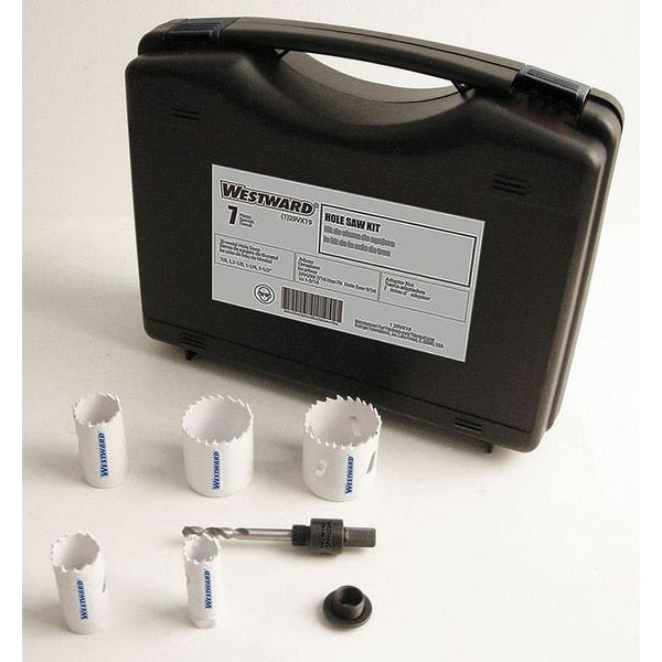 SKU G8493222CategoriesDescription Hole Saw Kit, Primary Material Application Metal, Materials Cut Metal, Plastics, Sheet Metal, Wood, Arbor Design Not Included, Tooth Material Bi-Metal, Teeth per Inch 4/6, Max. Cutting Depth 1 1/2 in, Impact Rated No, Number of Hole Saws 5, Saw Size Range 7/8 in to 1 1/2 in, Hole Saw Sizes (Hole Saws) 7/8 in, 1 in, 1 1/8 in, 1 1/4 in, 1 1/2 in, Thread Size 1/2 In.-20, Shank Size 7/16 in Hex, Pilot Drill Size 1/4 in dia x 4 in L, Number of Pieces 7graingerSKU: 29VX19, mscSKU: , zoro_no: G8493222, mongo_id: 65bbe8bc22d7a989a9912340