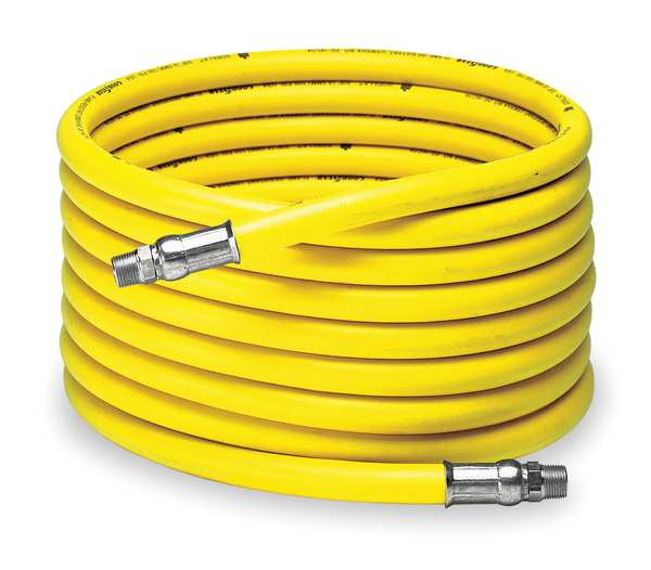Description Air Hose, Hose Inside Dia. 1/4 in, Hose Outside Dia. 5/8 in, Hose Length 50 ft, Hose Color Yellow, Hose Tube Material Nitrile, Hose Cover Material Carboxylated Nitrile Rubber, Max. Working Pressure @ 70 F 500 psi, Temp. Range -20 Degrees to 190 Degrees F, Standards USMSHA No. 2G-14C/14, Safety Factor 4:1, Hose Fitting A Material Carbon Steel, Hose Fitting B Material Carbon Steel, Hose Fitting A Type MNPT, Hose Fitting B Type MNPT, Hose Fitting A Size 1/4 in, Hose Fitting B Size 1/4 in