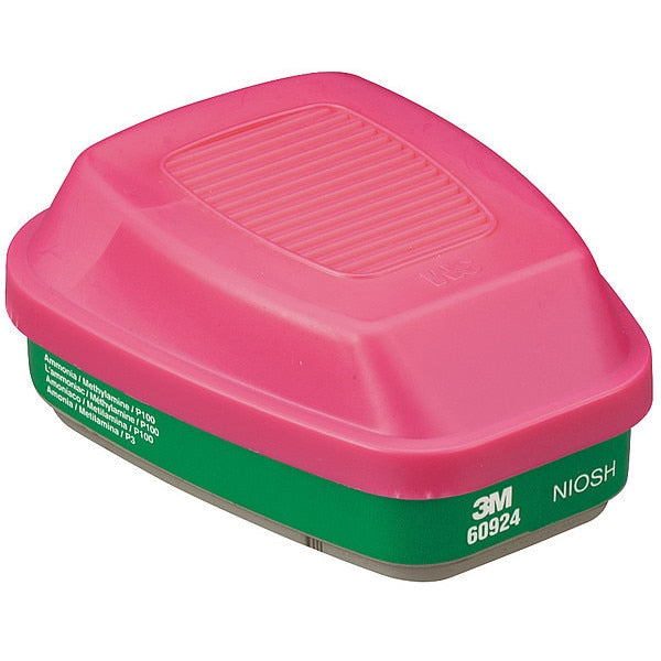 SKU G2236972CategoriesDescription Combination Cartridge/Filter, NIOSH Rating Ammonia (AM), Methylamine (MA), P100, Green, Magenta, Compatible with Brand and Series 3M 6000 Series, 3M 7000 Series, 3M FF-400 Series, Respirator Cartridge Type Air Purifying Respirator, Respirator Connection Type Bayonet, Package Quantity 2graingerSKU: 4JG13, mscSKU: , zoro_no: G2236972, mongo_id: 65bbe83a22d7a989a98e277e