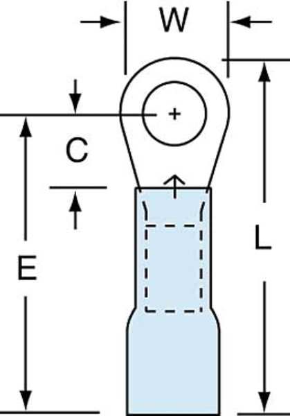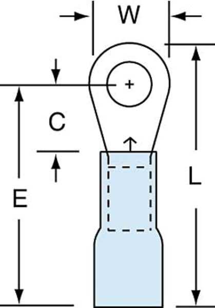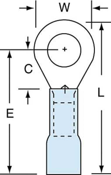 SKU G3168453CategoriesDescription Ring Terminal, Insulation Color Blue, Maximum Operating Temperature 221 Degrees F, Maximum Voltage 600 V, Minimum Wire Size 16 AWG, Maximum Wire Size 14 AWG, Termination Style Crimp, Tongue Width 0.56 in, Contact Material Copper, Standards CSA Certified, UL Listed, Insulation Type Heat Shrink, Overall Length 1.1 in, Package Quantity 25graingerSKU: 3LB31, mscSKU: , zoro_no: G3168453, mongo_id: 65bbea5e22d7a989a99aea54