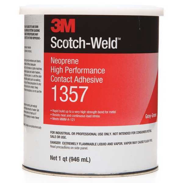 SKU G1566363CategoriesDescription Contact Cement, Adhesive Color Gray-Green, Container Size 1 qt, Container Type Can, Flammability Flammable, For Surface Type Porous, Series 1357, Working Time 10 min, Heat Resistant Yes, Low Odor No, Maximum Performance Temperature 300 Degrees F, VOC Content Weight Less Than 580 g/L, Maximum Viscosity 450 cps, Water Resistance Water-Resistant, Maximum Application Temperature 120 Degrees F, Application Method Brush On, Flow Equipment, Roll On, Spray OngraingerSKU: 2RUF3, mscSKU: , zoro_no: G1566363, mongo_id: 65bbe7a53aaddbd5a90a984c