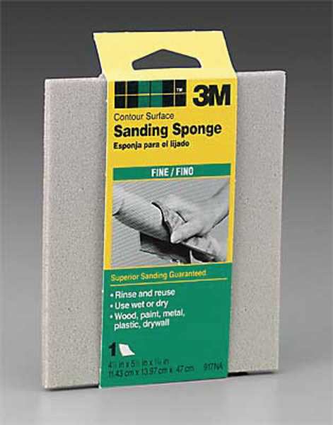 Description Contour Sanding Sponge, Abrasive Material Aluminum Oxide, Grade Fine, Grit Not Applicable, Number of Abrasive Sides 1, Series 917, Overall Length 5 1/2 in, Overall Thickness 3/16 in, Overall Width 4 1/2 in, Features Flexible for Use on a Variety of Surface Shapes, Rinse and Reuse, Sponge Shape Contour, Package Quantity 24
