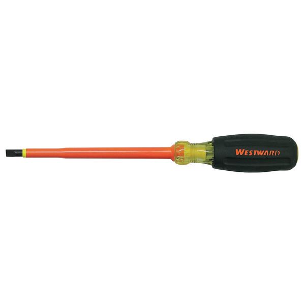 Description Insulated Slotted Screwdriver, Tip Size 1/4 in, Slotted, Molded, Overall Length 10 1/2 in, ESD Safe No, Non-Sparking No, Non-Magnetic No, Insulated Yes, Corrosion Resistant Yes, No, Tip Finish Black Oxide, Shank Coating Insulated