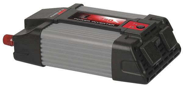 $228.74 / eachWeb priceInverter, ABS Case, 750W Nominal Output, 115V AC Output Voltage, 2 OutletsSKU G4693297CategoriesDescription Inverter, Features Lightweight, Output Form Modified Sine Wave, DC Connection Battery Clamps, Continuous Output Power 750 W, Peak Output Power 1,500 W, Number of Outlets 2, Input Voltage 12V DC, Output Voltage 115V AC, Output Frequency 59 to 61 Hz, Efficiency 88 Percent, Overall Depth 2 1/2 in, Overall Height 8 1/8 in, Overall Width 5 1/2 in, Outlet Type Standard 3-Prong Outlet, Number of Standard USB Ports 1, Case Material ABS, Includes Battery ClampsgraingerSKU: 26X001, mscSKU: , zoro_no: G4693297, mongo_id: 65bbe7a53aaddbd5a90a9b8c