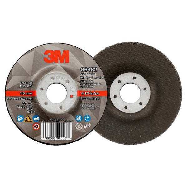 Description Cut-Off & Grinding Wheel, Abrasive Material Ceramic, Connector Size 7/8 in, Connector Type Unthreaded Hole, Grit 36, Overall Diameter 4 1/2 in, Overall Thickness 0.125 in, Primary Material Applicationn Stainless Steel, Steel, Compatible Tool Type Angle Grinder, Series Cut & Grind, Wheel Type Type 27, Maximum Operating Speed 13,300 RPM, Package Quantity 20