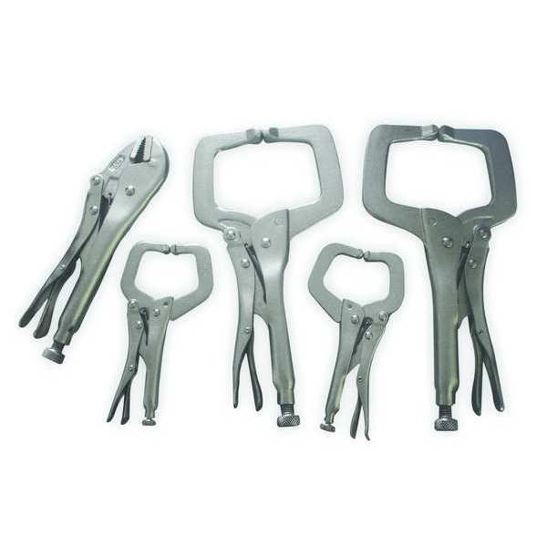 $128.74 / eachWeb priceLocking Clamp Set, 5 Pc.SKU G0532016CategoriesDescription Locking Clamp Set, Number of Pieces 5, (2) 6 In., (1) 10 In., (2) 11 In., Throat Depth 5-1/2", Locking Mechanism Release Lever, Screw Mechanism Adjusts Clamping Pressure, Pliers Length (2) 7 11/16 In., (1) 11 1/8 In., (2) 11 3/8 In., Nickel Plated, Hardened Carbon Steel, ASME B107.36-2002, Includes (2) 2FDC6, (1) 10 In, (2) 2FDD1 Locking ClampsgraingerSKU: 2FDD4, mscSKU: , zoro_no: G0532016, mongo_id: 65bbe96a22d7a989a9952b4c