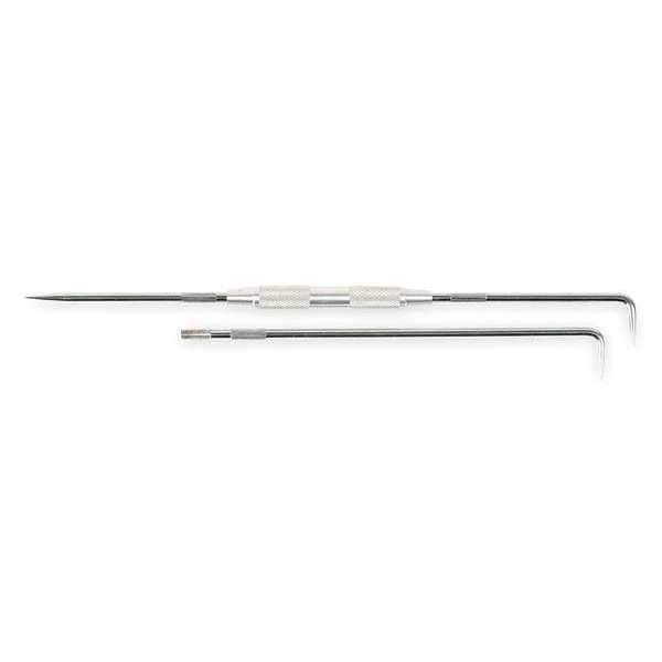 Description Machinist Scriber, Handle Material Steel, Handle Texture Knurled, Magnetic Tip Nonmagnetic, Removable Tip Permanent Tip, Threaded Tip Threaded Tip, Tip Material Steel, Tip Type 90 Degrees Angle, Straight, Overall Length 9 in, Finish Chrome Plated, Handle Diameter 5/16 in, Includes (3) Points, Product Type Scriber