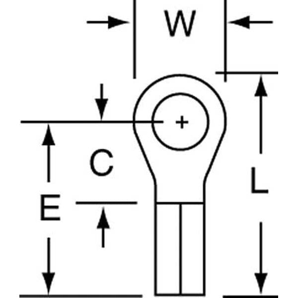 Description Ring Terminal, Insulation Color Bare, Maximum Operating Temperature 347 Degrees F, Maximum Voltage 600 V, Minimum Wire Size 16 AWG, Maximum Wire Size 14 AWG, Termination Style Crimp, Tongue Width 0.31 in, Contact Material Copper, Standards CSA Certified, UL Listed, Insulation Type Non-Insulated, Overall Length 0.74 in, Package Quantity 100