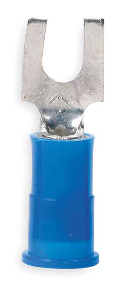 Description Fork Terminal, Contact Finish Tin, Contact Material Copper, Insulation Color Blue, Insulation Material Nylon, Maximum Operating Temperature 221 Degrees F, Maximum Voltage 600 V, Maximum Wire Size 14 AWG, Stud Size #10, Termination Style Crimp, RoHS Compliant Yes, Seam Style Butted, Standards CSA Certified, UL Listed, Barrel Length 0.46 in, Connection Material Copper, Connection Type Crimp, Minimum Operating Temperature -40 Degrees F, Minimum Wire Size 16 AWG, Overall Length 0.86 in