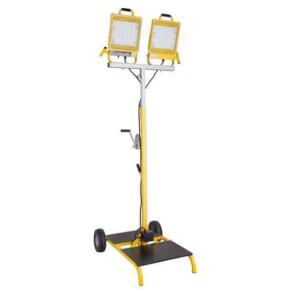 Description LED Tower Work Light, Power Source Corded, Battery Chemistry Not Applicable, Maximum Run Time Not Applicable, Maximum Brightness 44,000 lm, Number of Brightness Levels 1, Power Cord Length 12 ft, Operating Voltage 120V AC, Lighting Technology LED, Number of Lamp Heads 2, Mount Type Cart, Frame Color Black/Yellow, Hazardous Location Specification Not Rated, IP Rating Not Rated, Maximum Height Adjustment 12 ft, Color Rendering Index Not Applicable, Includes Bulb Yes, Adjustable Height Yes