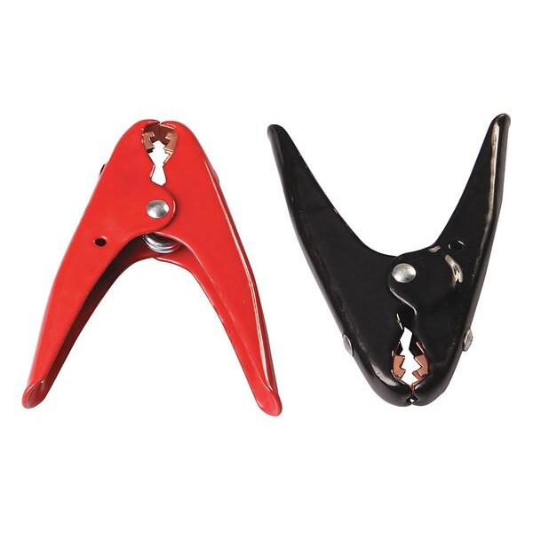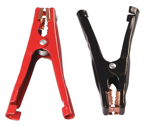 SKU G5351491CategoriesDescription Battery Booster Clamp, Jaw Type Parrot, Connection Type Clamp, Maximum Current 500 A, Maximum Voltage 12V, 24V, Maximum Jaw Opening 4 1/4 in, Contact Material Steel, Insulation Material Vinyl, Gauge 1 to 4 AWG, Number of Clamps 2, Color Black, Red, Includes Lead Jaw, Screw, Features Medium Duty, Overall Depth 4 1/4 in, Overall Length 5 15/16 in, Overall Width 1 in, 1 PairgraingerSKU: 23PC46, mscSKU: , zoro_no: G5351491, mongo_id: 65bbe8729a749db822791cda