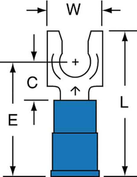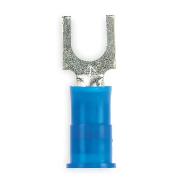 SKU G5669781CategoriesDescription Fork Terminal, Contact Finish Tin, Contact Material Copper, Insulation Color Blue, Insulation Material Nylon, Maximum Operating Temperature 221 Degrees F, Maximum Voltage 600 V, Maximum Wire Size 14 AWG, Stud Size #8, Termination Style Crimp, RoHS Compliant Yes, Seam Style Butted, Standards CSA Certified, UL Listed, Barrel Length 0.46 in, Barrel Style Insulation Grip, Connection Material Copper, Connection Type Crimp, Minimum Wire Size 16 AWG, Overall Length 0.86 in, Package Quantity 1000graingerSKU: 2DTT8, mscSKU: , zoro_no: G5669781, mongo_id: 65bbe9bf22d7a989a997548b