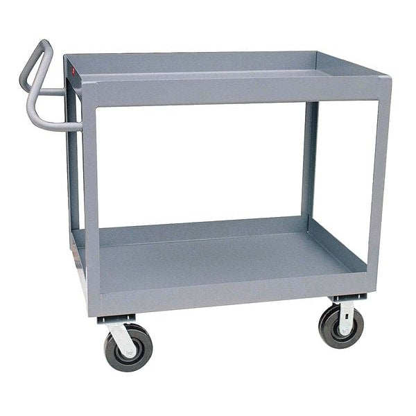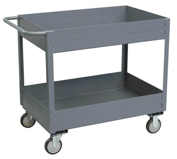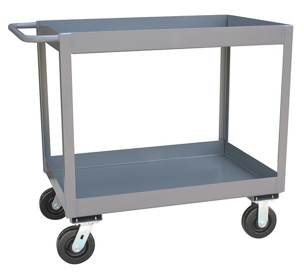 Steel Utility Cart with Deep Lipped Metal Shelves, Flat, 2 Shelves, 2,400 lbSKU G9952196Categories Material HandlingDescription Utility Cart with Deep Lipped Metal Shelves, Load Capacity 2,400 lb, Steel Material, 12 ga Gauge, Powder Coated Finish, Gray Color, Overall Length 36 in, Overall Width 25 in, Number of Shelves 2, Capacity per Shelf 1,200 lb, Distance Between Shelves 22 in, Shelf Length 30 in, Shelf Width 24 in, Top Shelf Height 36 in, Assembled/Unassembled AssembledgraingerSKU: 16C557, mscSKU: , zoro_no: G9952196, mongo_id: 65bbe81b22d7a989a98da254