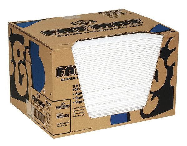 • Sorbents, 22 gal/pk, 56 oz/pad, Oil Absorbed, White, Polypropylene, 50 PK
