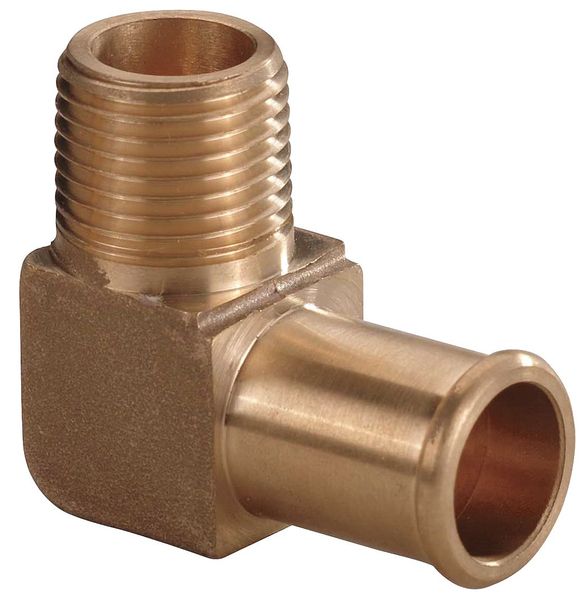 90 Degrees Elbow Crimped or Hose Clamp, 3/8 in Hose I.D, 1/4 in Thread
