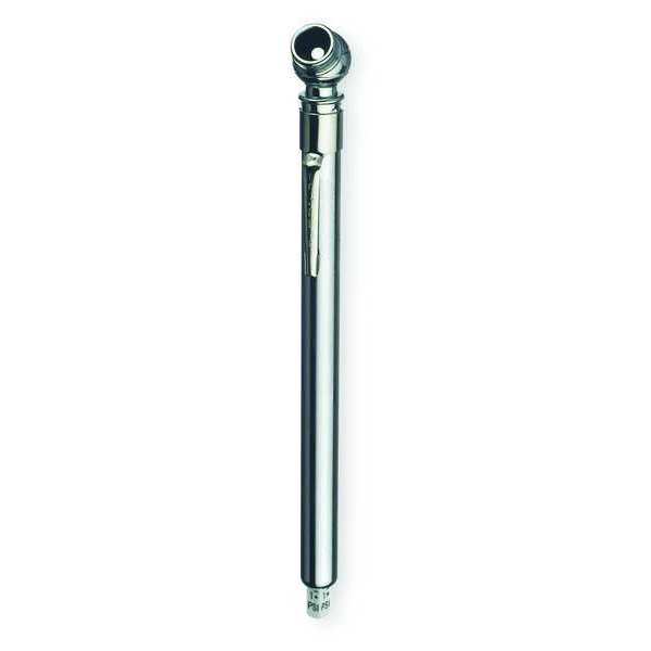 Description Pencil Tire Pressure Gauge, Product Type Tire Pressure Gauge, Gauge Type Pencil, Material Plastic, Steel, Overall Length 5 1/2 in, Tread Depth Calibration Increments Not Applicable, Tire Pressure Calibration Increments 1 psi, Minimum Operating Air Pressure 10 psi, Maximum Operating Air Pressure 75 psi, Includes Pocket Clip, Color Silver, Features 11 1/2 in Hose, Finish Chrome Plated, Maximum Operating Temperature 122 Degrees F, Maximum Rim Hole Size Not Applicable