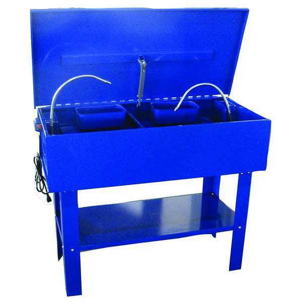 Description Parts Washer, For Solution Base Type Water-Based, Cleaning Method Flush, Tank Material Steel, Tank Capacity 40 gal, Maximum Fluid Level 10 1/4 in, Load Capacity 200 lb, Tank Overall Width 20 5/8 in, Tank Overall Depth 43 in, Tank Overall Height 10 5/8 in, Minimum Operating Temperature 50 Degrees F, Maximum Operating Temperature 95 Degrees F, Voltage 120V, Horsepower 29/500 hp, Includes Lift Off Cover with Safety Plate, Standards UL Listed, Cleaning Solution Included Not Applicable