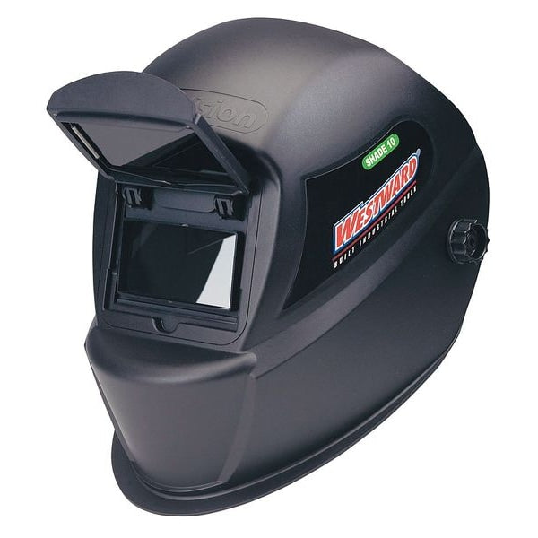 Description Welding Helmet, Color Black, Compatible Suspension Brand Name Westward, Compatible Suspension Grainger Part Number 45L593, Features Flip-Up Front, Grind Mode No, Helmet Material Nylon, Helmet Type Passive, Helmet Width 23 cm, Lens Color Black, Lens Material Glass, Light State 3, Magnification No, Number of Arc Sensors 0, Standards ANSI Z87.1,CSA Z94.3, Suspension Adjustment Type Ratchet, Switching Speed Not Rated, Viewing Area 3.86 in x 2.09 in, Welding Shade Designation W10