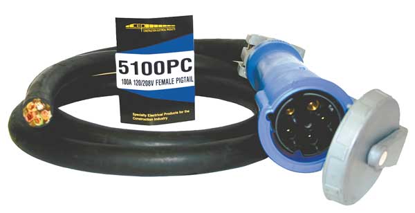 Description Temporary Power Cord, Max. Amps 100 A, Voltage Rating 120/208V AC, Connector End 5100C9W, Plug End Bare Wire, Number of Poles 4, Number of Wires 5, Wire Size 2/5, Color Black, Cord Length 6 ft, For Use With Distribution Cart, Standards CUL, UL