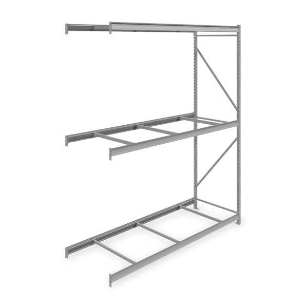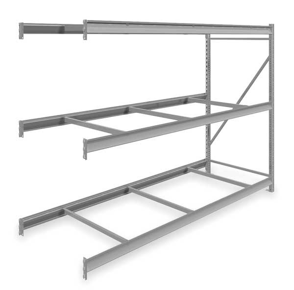 Description Bulk Storage Rack, Shelving Type Add-On, Overall Width 96 in, Overall Depth 36 in, Overall Height 120 in, Decking Material None, No. of Shelves 3, Shelf Capacity 2150 lb, Load Capacity 6450 lb, Shelving Frame Material Steel, Gray, Finish - Shelving and Racks Powder Coated, Shelf Adjustments 2 in, For Use With Tennesco Bulk Storage and Boltless Racks, Includes (3) Shelves, End Frame