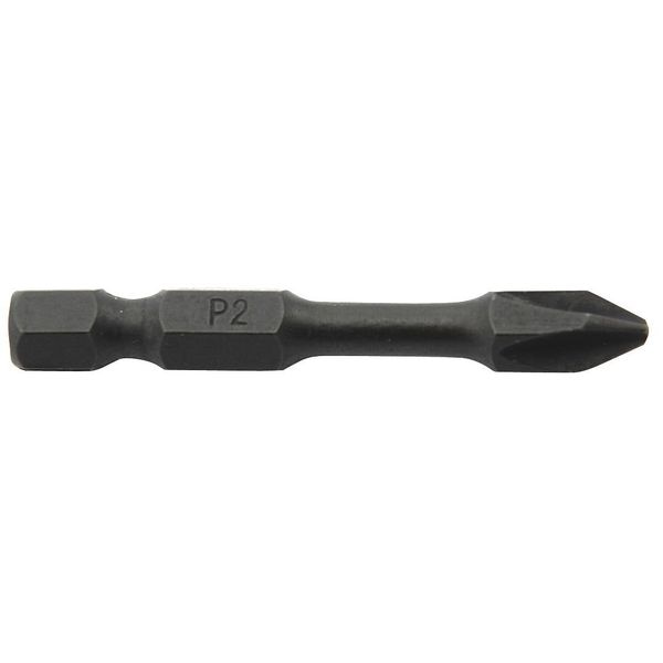 Description Power Bit, Application - Tools Power, Bit Style Phillips, Fastening Tool Tip Size #2, Hex Shank Size 1/4 in, Fastening Tool Material S2 Steel, Overall Bit Length 2 in, SAE, Finish Black Phosphated, Impact Rated Yes, Power Bit, Package Quantity 5