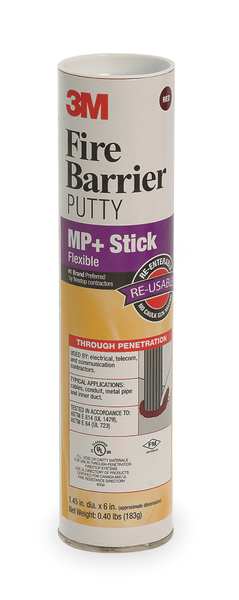 Description Fire Barrier Putty, Application Method Putty Stick, Color Red, Container Size 0.82 lb, Container Type Bar, Coverage Area Not Applicable, Drying Time Not Applicable, Expansion Temperature Not Applicable, Expansion Volume Not Applicable, Fire Rating 4 hr, Fire Resistance Type Not Applicable, Firestop Type Putty Stick, Flame Spread Index Not Applicable, Flame Spread Rating Not Applicable, For Material Type All Common Construction Surfaces, For Use On Electrical Conduit and Metal Pipe Penetrations