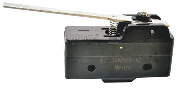 SKU G4718314CategoriesDescription Industrial Snap Action Switch, Hinge, Lever, AC Contact Rating - Snap Action Switch 15 A @ 240 V, DC Contact Rating - Snap Action Switch 15 A @ 240 V, Contact Form- Switches SPDT, Lever Actuator Length - Snap Action Switch 2.5 in, Height - Snap Action Switch 1 in, Width - Snap Action Switch 2 in, Depth - Snap Action Switch 0.7 in, Electrical Connection - Snap Action Switch Solder Lug, Mounting Dimension - Snap Action Switch 1.00 in Centers, Series BZgraingerSKU: null, mscSKU: null, zoro_no: G4718314, mongo_id: 65bbe67b3aaddbd5a903153c