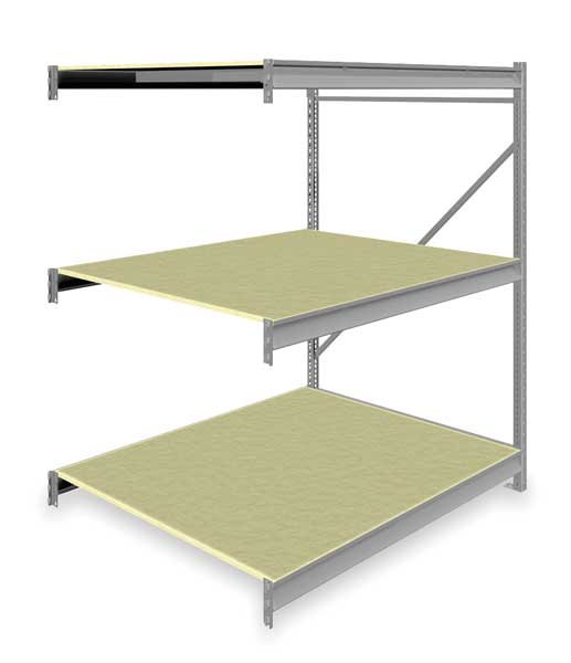 SKU G1204445CategoriesDescription Bulk Storage Rack, Shelving Type Add-On, Overall Width 72 in, Overall Depth 48 in, Overall Height 96 in, Decking Material Particleboard, No. of Shelves 3, Shelf Capacity 2750 lb, Load Capacity 8250 lb, Shelving Frame Material Steel, Gray, Finish - Shelving and Racks Powder Coated, Shelf Adjustments 2 in, For Use With Tennesco Bulk Storage and Boltless Racks, Includes (3) Shelves, End FramegraingerSKU: 7B142, mscSKU: , zoro_no: G1204445, mongo_id: 65bbe8c222d7a989a991512c
