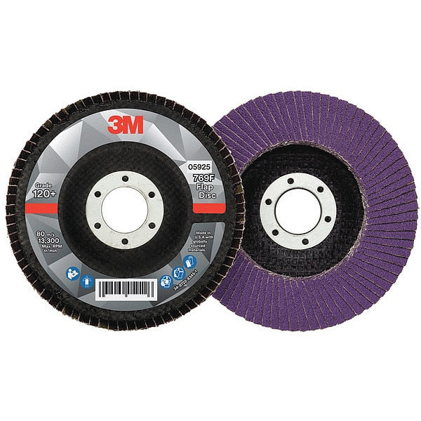Flap Disc, 4 1/2 in Dia, 7/8 in ArborSKU G7469190CategoriesDescription Flap Disc, Abrasive Type Coated, Abrasive Material Ceramic, Grade Fine, Backing Plate Material Fiberglass, Connector Size 7/8 in, Connector Type Unthreaded Hole, Density Rating Standard, Flap Disc Type Type 27, Overall Diameter 4 1/2 in, Series 769F, Backing Material Polyester, Backing Weight YF, Coating Coverage Open, Grit 120, Maximum Operating Speed 13,300 RPMgraingerSKU: 498Y05, mscSKU: , zoro_no: G7469190, mongo_id: 65bbe8bc22d7a989a991299a