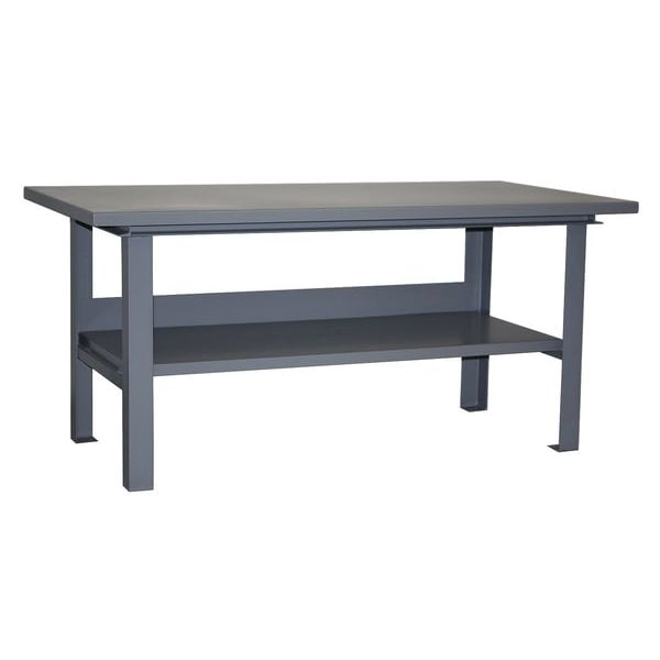 Work Table, Steel, 72" W, 34" Height, 4000 lb., StraightSKU G9956721CategoriesDescription Work Table, Height Adjustability Fixed Height, Number of Shelves 1, Assembly Fully Assembled, Back Stop Height Not Applicable, Color Gray, Edge Shape Square, Features 3 in Channel Underbracing Support, Clearance Between Shelves is 16 in, Frame Material Steel, Frame Material Finish Powder Coated, Height Adjustment Increments Not Applicable, Included Components Lower Shelf, Includes Flush Mounted Lower Shelf, Flush Top, Maximum Adjustable Height Not ApplicablegraingerSKU: 16A256, mscSKU: , zoro_no: G9956721, mongo_id: 65bbe84c22d7a989a98ea975