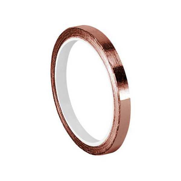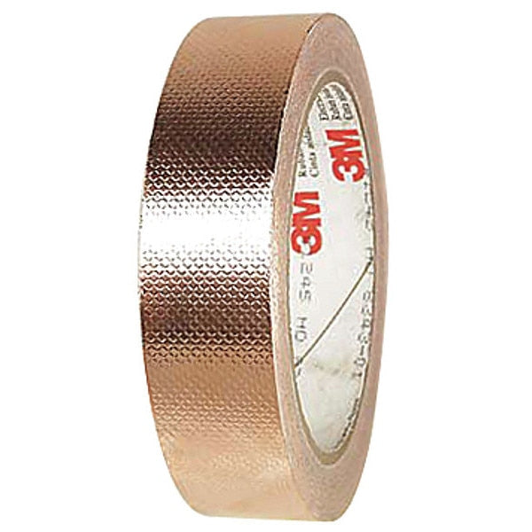 Description Conductive Electrical Tape, Tape Backing Material Copper, 1/2 in, 54 ft, Tape Color Copper, Tape Sub-Type General Purpose Foil, Tape Adhesive Material Acrylic, 4 mil, 3M(TM), 1245, Minimum Tape Performance Temperature Not Rated, Maximum Tape Performance Temperature Not Rated, Voltage Rating 600 V, Shielding Effectiveness Excellent (Over 85dB), Liner Included Yes, Product Form Continuous Roll, Tape Adhesive Format Single-Sided, Package Quantity 18