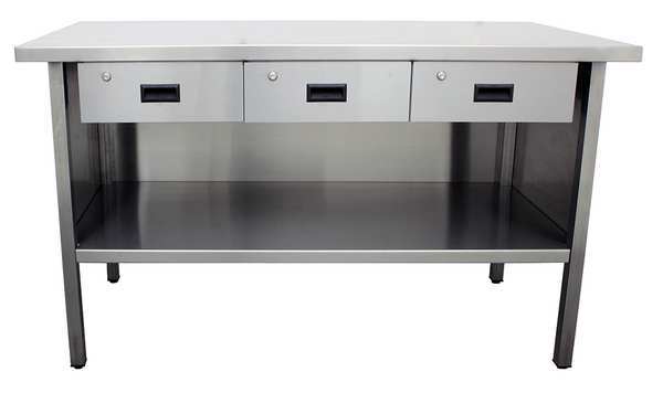Workbenches, Stainless Steel, 60" W, 34" Height, 1200 lb., StraightSKU G9823432CategoriesDescription Workbench, Height Adjustability Fixed Height, Top Material Stainless Steel, Assembly Fully Assembled, Color Silver, Frame Material Stainless Steel, Leg Type Straight Leg, Maximum Adjustable Height Not Applicable, Minimum Adjustable Height Not Applicable, Non-Metal Top Thickness Not Applicable, Number of Cabinets 0, Number of Drawers 3, Number of Knockouts 0, Included Components Lower Shelf, Drawers, Number of Outlets 0, Number of Shelves 2, Overall Depth 30 in, Overall Fixed Height 35 ingraingerSKU: 29RK52, mscSKU: , zoro_no: G9823432, mongo_id: 65bbe6b03aaddbd5a90488ed