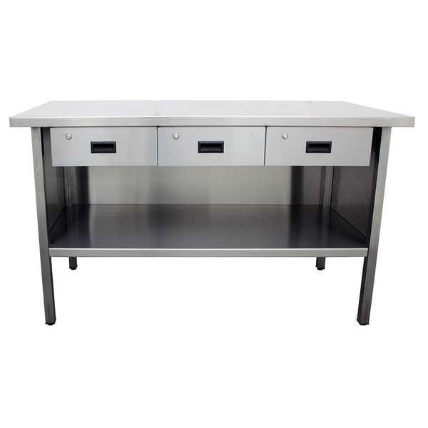 SKU G9823423CategoriesDescription Workbench, Height Adjustability Fixed Height, Top Material Stainless Steel, Assembly Fully Assembled, Color Silver, Frame Material Stainless Steel, Leg Type Straight Leg, Maximum Adjustable Height Not Applicable, Minimum Adjustable Height Not Applicable, Non-Metal Top Thickness Not Applicable, Number of Cabinets 0, Number of Drawers 3, Number of Knockouts 0, Included Components Lower Shelf, Drawers, Number of Outlets 0, Number of Shelves 2, Overall Depth 30 in, Overall Fixed Height 35 ingraingerSKU: 29RK53, mscSKU: , zoro_no: G9823423, mongo_id: 65bbe5bf3aaddbd5a9fe40d9