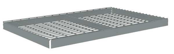 Description Shelf, Gray, Decking Style Reinforced Ribbed, Steel, Zinc Plated Decking Finish, 22 ga, Single Straight, Zinc Plated, Frame Material Steel, Overall Height 2 1/4 in, Overall Width 60 in, Overall Depth 24 in, Load Capacity 750 lb, Includes (4) Beams
