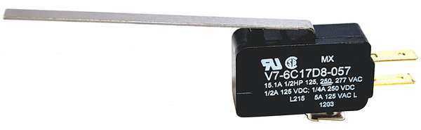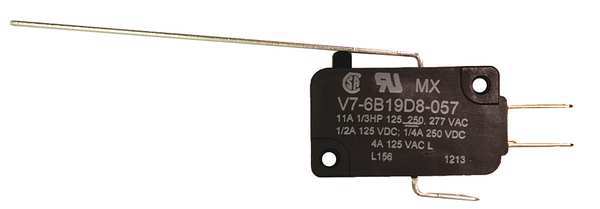 SKU G4733364CategoriesDescription Miniature Snap Action Switch, Lever, Long, AC Contact Rating - Snap Action Switch 5 A 125 V, 250 V, 277 V 1/10 HP 250 V, Contact Form- Switches SPDT, Lever Actuator Length - Snap Action Switch 2.02 in, Height - Snap Action Switch 0.63 in, Width - Snap Action Switch 1.14 in, Depth - Snap Action Switch 0.4 in, Electrical Connection - Snap Action Switch 3/16 in Quick Connect, Mounting Dimension - Snap Action Switch 0.87 in Centers, Series V7$6.69 / eachWeb priceMiniature Snap Action Switch, Lever, Long Actuator, SPDT, 5A @ 240V AC Contact RatingSKU G4733364CategoriesDescription Miniature Snap Action Switch, Lever, Long, AC Contact Rating - Snap Action Switch 5 A 125 V, 250 V, 277 V 1/10 HP 250 V, Contact Form- Switches SPDT, Lever Actuator Length - Snap Action Switch 2.02 in, Height - Snap Action Switch 0.63 in, Width - Snap Action Switch 1.14 in, Depth - Snap Action Switch 0.4 in, Electrical Connection - Snap Action Switch 3/16 in Quick Connect, Mounting Dimension - Snap Action Switch 0.87 in Centers, Series V7$6.69 / eachWeb price -