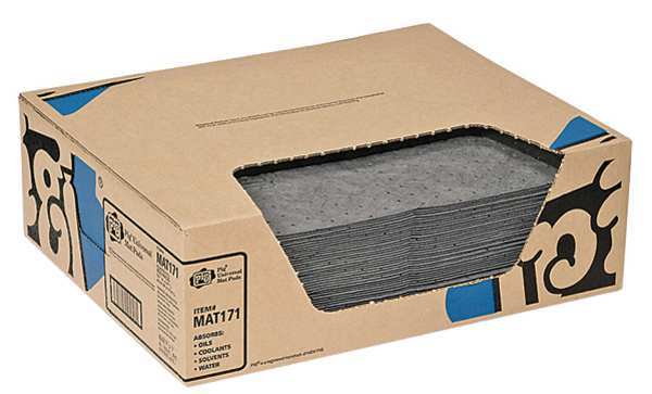 SKU G7972377CategoriesDescription Product Type Sorbent Pad, Fluids Absorbed Universal, For Use With Chemical or Metal Type Universal, Size 15 in x 20 in, Volume Absorbed Per Pad 22 oz, Volume Absorbed per Pkg. 8 gal, Color/Pattern Gray, Material Polypropylene, Number of Layers 8-ply, Perforated Yes, Perforated Size 10 in x 15 in, Package Quantity 50graingerSKU: 30PY75, mscSKU: , zoro_no: G7972377, mongo_id: 65bbe6433aaddbd5a901acf6