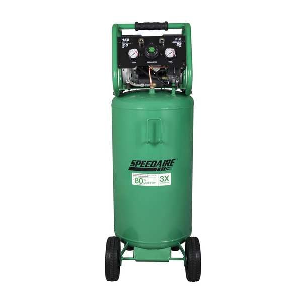 SKU G504395296CategoriesDescription Air Compressor, Lubrication Type Oil Free, Air Tank Style Vertical, Output Power 2 hp, Free Air Flow Rate 5.2 cfm, Maximum Operating Pressure 150 psi, Air Tank Size 26 gal, Input Voltage 120 VAC, Current Rating 15 A, Sound Level 73 dBA, Weight 123 lb, Free Air Flow Rate @ Maximum Pressure 3.9 cfm, Pump Type Rocking Piston, Number of Stages 4, Motor Type Quiet InductiongraingerSKU: 787U81, mscSKU: , zoro_no: G504395296, mongo_id: 65bbe8a322d7a989a9907f8b