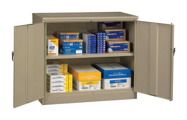 SKU G2116488Categories Raw MaterialsDescription Storage Cabinet, Base Type Leveling, Body Panel Type Solid, Cabinet Color Sand, Cabinet Material Steel, Cabinet Storage Components Shelves, Door Handle Type Swing, Door Type Solid, Duty Rating Medium Duty, For Use Indoors/Outdoors No, Frame Assembled Assembled, Load Capacity per Shelf 400 lb, Lock Type Keyed, Mobility Stationary, Mounting Location Freestanding, Number of Shelves 2, Overall Depth 18 in, Overall Height 42 in, Overall Width 48 in, Audit Trail Storage NonegraingerSKU: 8YF50, mscSKU: , zoro_no: G2116488, mongo_id: 65bbe5893aaddbd5a9fcc72c