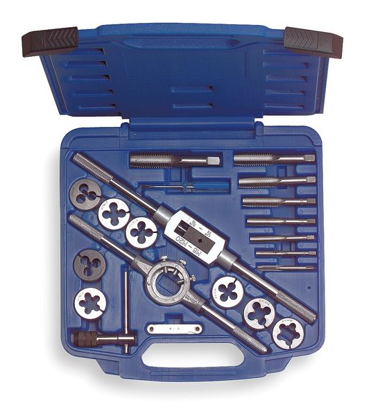 SKU G1118451CategoriesDescription Tap and Die Set, Number of Pieces 21, Die Shape Round Fixed, Tap Type Hand, Die Material High Speed Steel, Thread Sizes Included 1/2 In.-13, 1/4 In.-20, 3/4 In.-10, 3/8 In.-16, 5/16 In.-18, 5/8 In.-11, 7/16 In.-14, 9/16 In.-12, Die Thread Sizes Included 1/2 In.-13, 1/4 In.-20, 3/4 In.-10, 3/8 In.-16, 5/16 In.-18, 5/8 In.-11, 7/16 In.-14, 9/16 In.-12, Number Of Taps 8, Thread Standard UNC, Tap Shank Standard ANSIgraingerSKU: 1PZ46, mscSKU: , zoro_no: G1118451, mongo_id: 65bbe80f9a749db82276fb1c